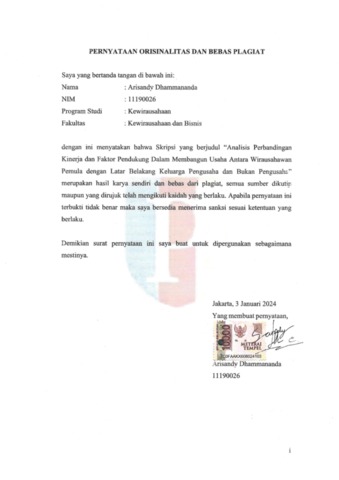 Dhammananda, Arisandy (2024) Analisis Perbandingan Kinerja Dan Faktor Pendukung Dalam Membangun Usaha Antara Wirausahawan Pemula Dengan Latar Belakang Keluarga Pengusaha Dan Bukan Pengusaha. bachelor thesis, Podomoro University.