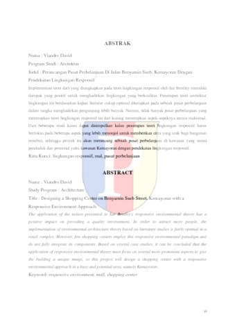 Implementasi teori dari yang diungkapkan pada teori lingkungan responsif oleh Ian Bentley memiliki dampak yang positif untuk menghadirkan lingkungan yang berkualitas. Penerapan teori arsitektur lingkungan ini berdasarkan kajian literatur cukup optimal diterapkan pada sebuah pusat perbelanjaan dalam rangka menghadirkan pengunjung lebih banyak. Namun, tidak banyak pusat perbelanjaan yang menerapkan teori lingkungan responsif ini dan kurang menerapkan aspek-aspeknya secara maksimal. Dari beberapa studi kasus dapat disimpulkan kalau penerapan teori lingkungan responsif harus berfokus pada beberapa aspek yang lebih menonjol untuk memberikan citra yang unik bagi bangunan tersebut, sehingga proyek ini akan merancang sebuah pusat perbelanjaan di kawasan yang ramai penduduk dan potensial yaitu kawasan Kemayoran dengan pendekatan lingkungan responsif.