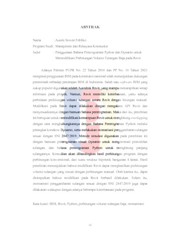Febliko, Austin Steven (2024) Penggunaan Bahasa Pemrograman Python dan Dynamo untuk Memodifikasi Perhitungan Volume Tulangan Baja Revit. bachelor thesis, Podomoro University.