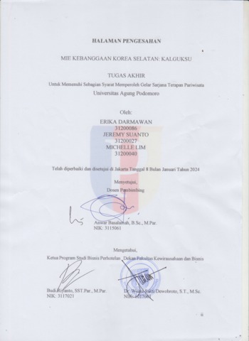 Lim, Michelle (2024) Mi Kebanggaan Korea Selatan: Kalguksu. Diploma thesis, Podomoro University.
