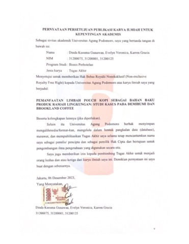 Gunawan, Dinda Kusuma (2024) Pemanfaatan Limbah Pouch Kopi Sebagai Bahan Baku Produk Ramah Lingkungan: Studi Kasus pada Demibumi dan Brookland Coffee. Diploma thesis, Podomoro University.