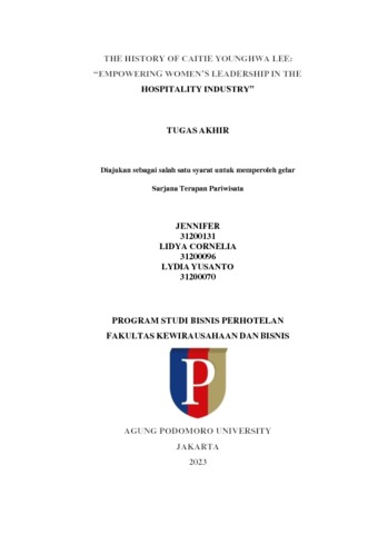 Jennifer, Jennifer (2024) Sejarah Dari Caitie Younghwa Lee: " Memberdayakan Kepemimpinan Wanita di Industri Perhotelan ". Diploma thesis, Podomoro University.