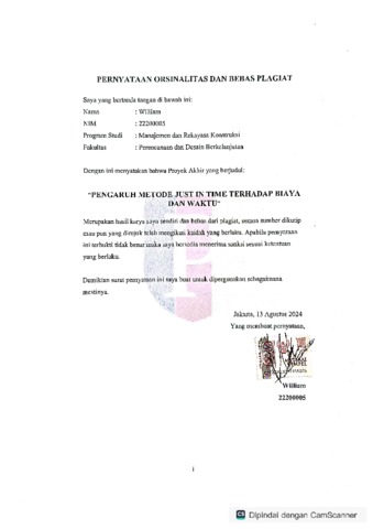 William, William (2024) Pengaruh Metode Just In Time Terhadap Biaya dan Waktu. Diploma thesis, Podomoro University.