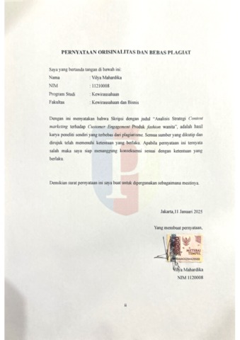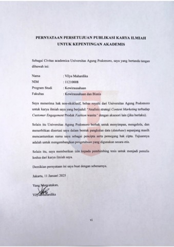 Mahardika, Vilya (2025) Analisis Strategi Pemasan Konten Terhadap Keterlibatan Pelanggan pada Produk Fesyen Wanita. bachelor thesis, Podomoro University.