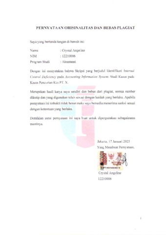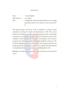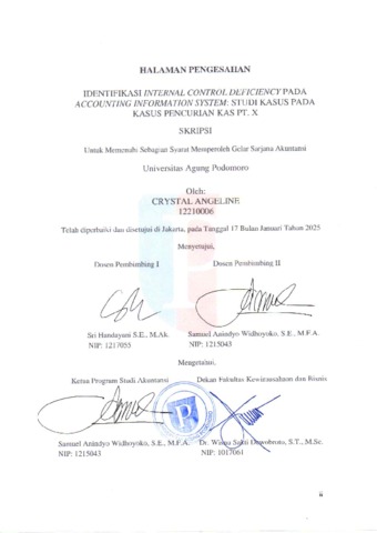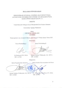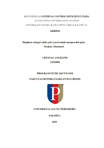 Angeline, Crystal (2025) Identifikasi Internal Control Deficiency pada Accounting Information System: Studi Kasus pada Kasus Pencurian Kas PT. X. Diploma thesis, Podomoro University.