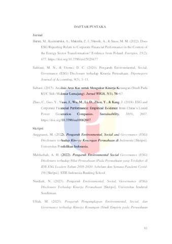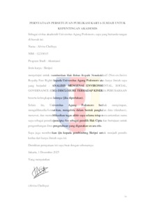 | Uncontrolled Keywords: | Pengungkapan Kinerja Perusahaan, Lingkungan, Sosial, Tata Kelola (ESG). | ||||||||