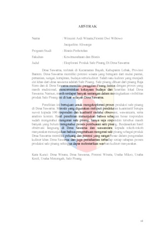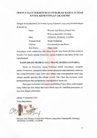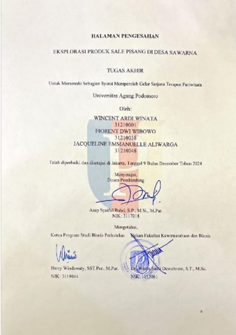 Winata, Wincent Ardi (2025) Eksplorasi Produk Sale Pisang di Desa Sawarna. Diploma thesis, Podomoro University.