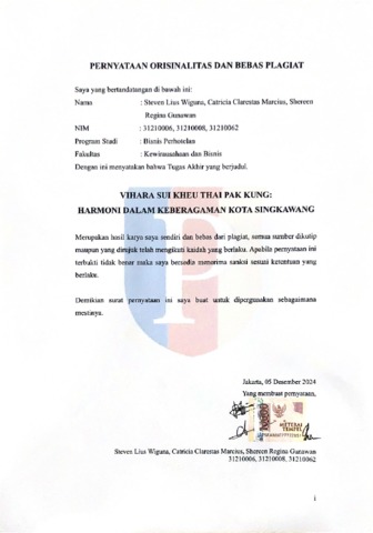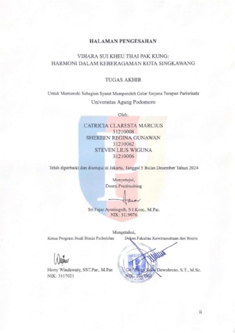 Marcius, Catricia Claresta (2025) Vihara Sui Kheu Thai Pak Kung: Harmoni dalam Keberagaman Kota Singkawang. Diploma thesis, Podomoro University.