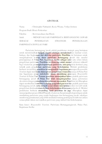 Pariwisata bertanggung jawab adalah pendekatan strategis yang bertujuan untuk meminimalkan dampak negatif sekaligus memaksimalkan manfaat sosial, budaya, dan lingkungan dari aktivitas pariwisata. Penelitian ini bertujuan untuk mengeksplorasi konsep dasar pariwisata bertanggung jawab dan menilai penerapannya di Pulau Pari, Kepulauan Seribu sebagai salah satu solusi dalam pengelolaan pariwisata. Penelitian ini dirancang untuk menjadi referensi edukatif bagi wisatawan, pemangku kepentingan pariwisata, serta pengelola destinasi yang tertarik pada pengelolaan pariwisata yang berkelanjutan. Melalui pendekatan berbasis storytelling, penelitian ini menganalisis bagaimana penerapan Responsible Tourism dapat membantu dalam proses pengelolaan wisata khususnya di Pulau Pari dan bagaimana peran stakeholder dalam mendukung penerapan Responsible Tourism di Pulau Pari. Temuan penelitian menunjukkan bahwa praktik pariwisata bertanggung jawab di Pulau Pari telah mengintegrasikan upaya pelestarian ekosistem dengan peningkatan kesejahteraan masyarakat. Penelitian ini diharapkan dapat memberikan kontribusi terhadap pengembangan teori dan praktik pariwisata bertanggung jawab, serta menjadi acuan dalam menciptakan solusi inovatif untuk pengelolaan destinasi wisata berbasis keberlanjutan di kawasan pulau kecil. Melalui pendekatan berbasis storytelling, hasil penelitian ini juga diharapkan dapat menyampaikan pesan edukatif kepada wisatawan dan pemangku kepentingan untuk mendukung pariwisata yang ramah lingkungan dan bertanggung jawab, sekaligus mendorong pemahaman yang lebih mendalam tentang pentingnya kolaborasi antara semua pihak dalam mewujudkan pariwisata yang inklusif dan berkelanjutan.