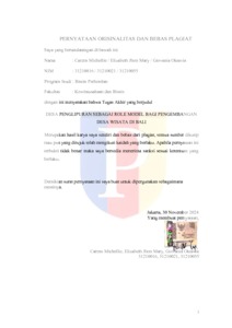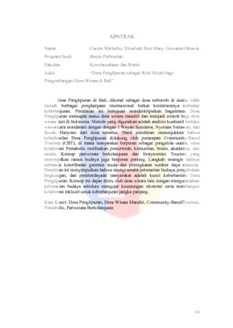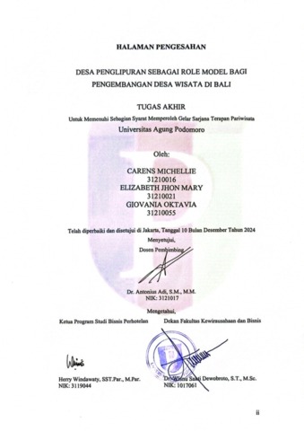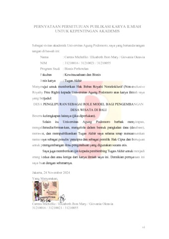 Michellie, Carens (2025) Desa Penglipuran Sebagai Role Model Bagi Pengembangan Desa Wisata di Bali. Diploma thesis, Podomoro University.