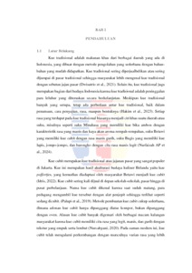 Kue Tradisional adalah salah satu warisan kuliner dari berbagai daerah di Indonesia yang diolah dengan cara sederhana menggunakan bahan-bahan yang mudah ditemukan. Berdasarkan laporan Statistik Konsumsi Pangan dari Kementerian Pertanian, konsumsi tepung terigu di Indonesia terus mengalami peningkatan dalam beberapa tahun terakhir, dan tepung ketan hitam masih belum banyak digunakan oleh masyarakat sehingga berpotensi untuk diteliti sebagai subtitusi tepung terigu. Penelitian ini bertujuan untuk menilai kualitas rasa, aroma, tekstur, dan cita rasa kue cubit dengan subtitusi tepung ketan hitam. Selain itu penelitian ini ingin mengetahui daya terima Masyarakat tentang kue cubit dengan subtitusi tepung ketan hitam. Uji coba ini menggunakan hedonik dan organoleptik dan di analisa dengan metode paired sample t-test. Berdasarkan dari hasil uji hedonic, masyarakat masih lebih menyukai produk kontrol dengan nilai mean 4 tetapi produk perlakuan memiliki nilai yang tidak jauh berbeda dengan rata-rata nilai kue perlakuan dengan nilai mean 3.61. Hasil penelitian dalam uji organoleptik memiliki perbedaan yang terlihat di pembandingan warna, aroma, tekstur dan rasa dari produk. Berdasarkan hasil penelitian hanya produk substitusi 25% hingga 50% tepung ketan hitam lebih dapat diterima oleh masyarakat.