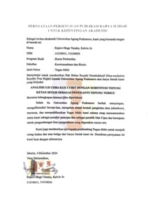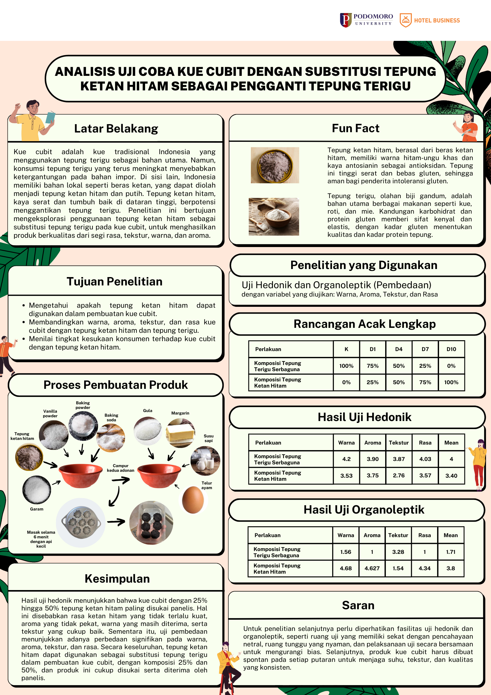 Jo, Kelvin (2025) Analisis Uji Coba Kue Cubit dengan Substitusi Tepung Ketan Hitam Sebagai Pengganti Tepung Terigu. bachelor thesis, Podomoro University.